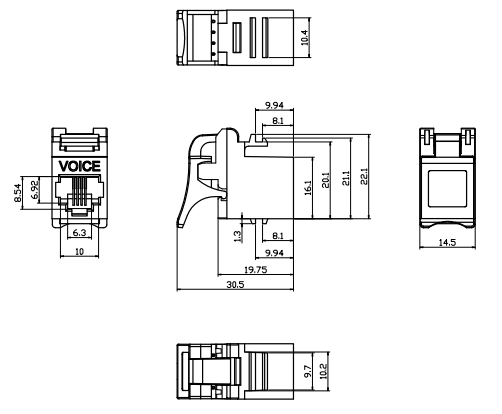 Is gléas beag é an Keystone Jack is féidir a shuiteáil i bpláta balla nó i bpainéal paiste eochair, ag soláthar bealach áisiúil agus solúbtha chun cáblaí a nascadh agus a dhícheangal de réir mar is gá.